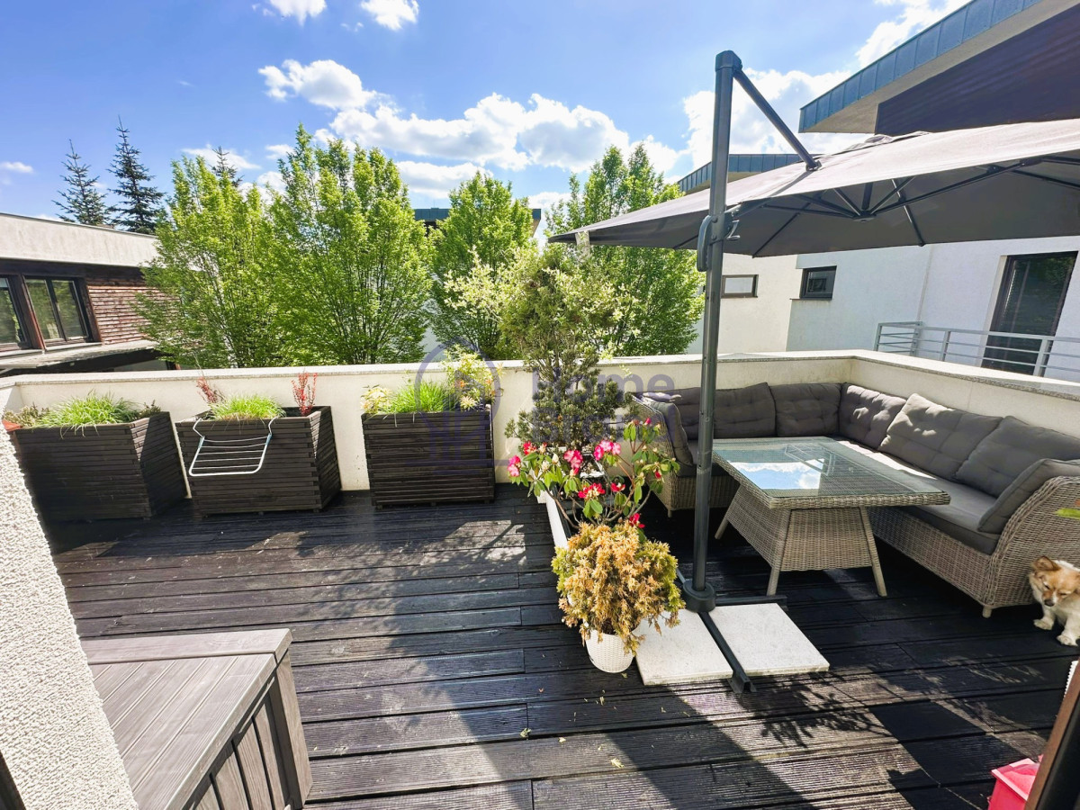 - Taras: przestronny, z wyjściem z salonu