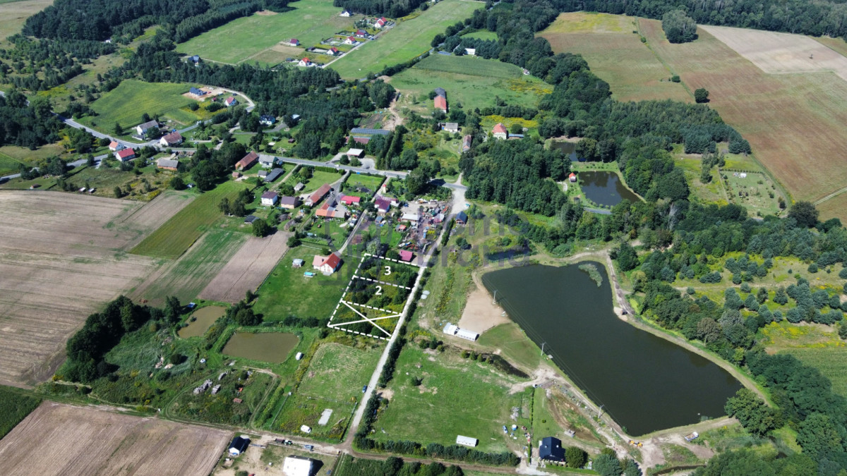 W odległości 30 metrów od działek znajduje się staw, co jest dodatkowym atutem tego miejsca, zapewniającym spokój i bliskość natury.