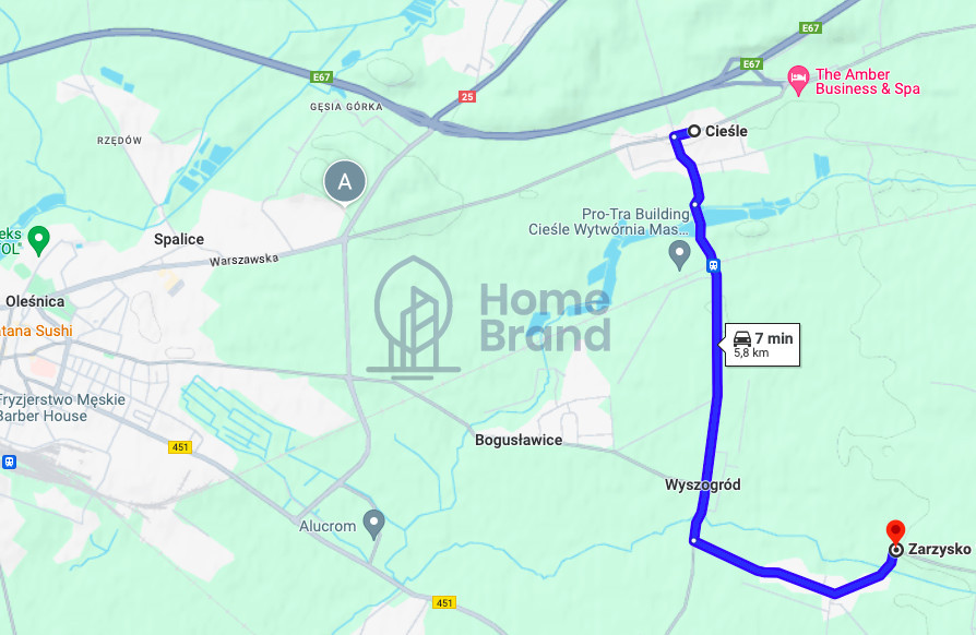 Rewelacyjny wyjazd na S8 w kierunku Wrocławia lub Warszawy. (wjazd na S8 w Cieślach 5 min od działek)